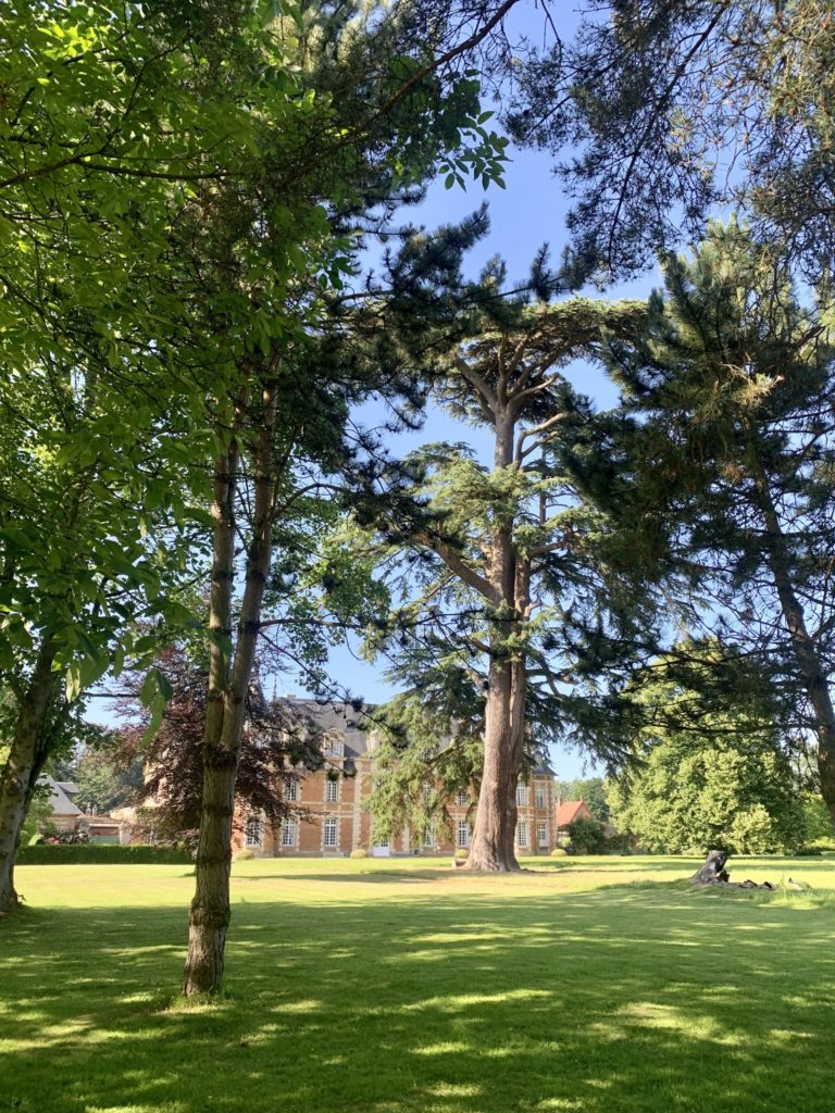 Dominé par un cèdre du Liban bi-centenaire, le parc du Château de Miromesnil est clos de murs de briques (XVIIème siècle), à l’abri desquels s’épanouissent arbres fruitiers, rosiers, magnolias et pivoines arborescentes.
