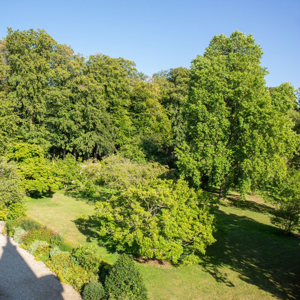 un sut de loup ou AhHA. Il permet d’éviter que les animaux sauvages ne pénètrent dans la propriété tout en prolongeant la perspective amorcée par la futaie.