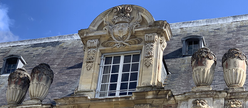 La façade de la cour d’honneur du château de Miromesnil, restauré au 17ème siècle, est encore ornée de 8 pots à feu. Ils sont en pierre de taille et ne sont plus ornés d’une fausse flamme de pierre. Ils sont creux pour que l’on puisse y mettre le feu. Cela permettait d’éclairer la cour et le château les soirs de réceptions. Pour cela on versait de l’huile que l’on enflammait. Le risque d’incendie est alors important et pour éviter que la toiture ne flambe, on fixait derrière chaque pot, une plaque de métal.